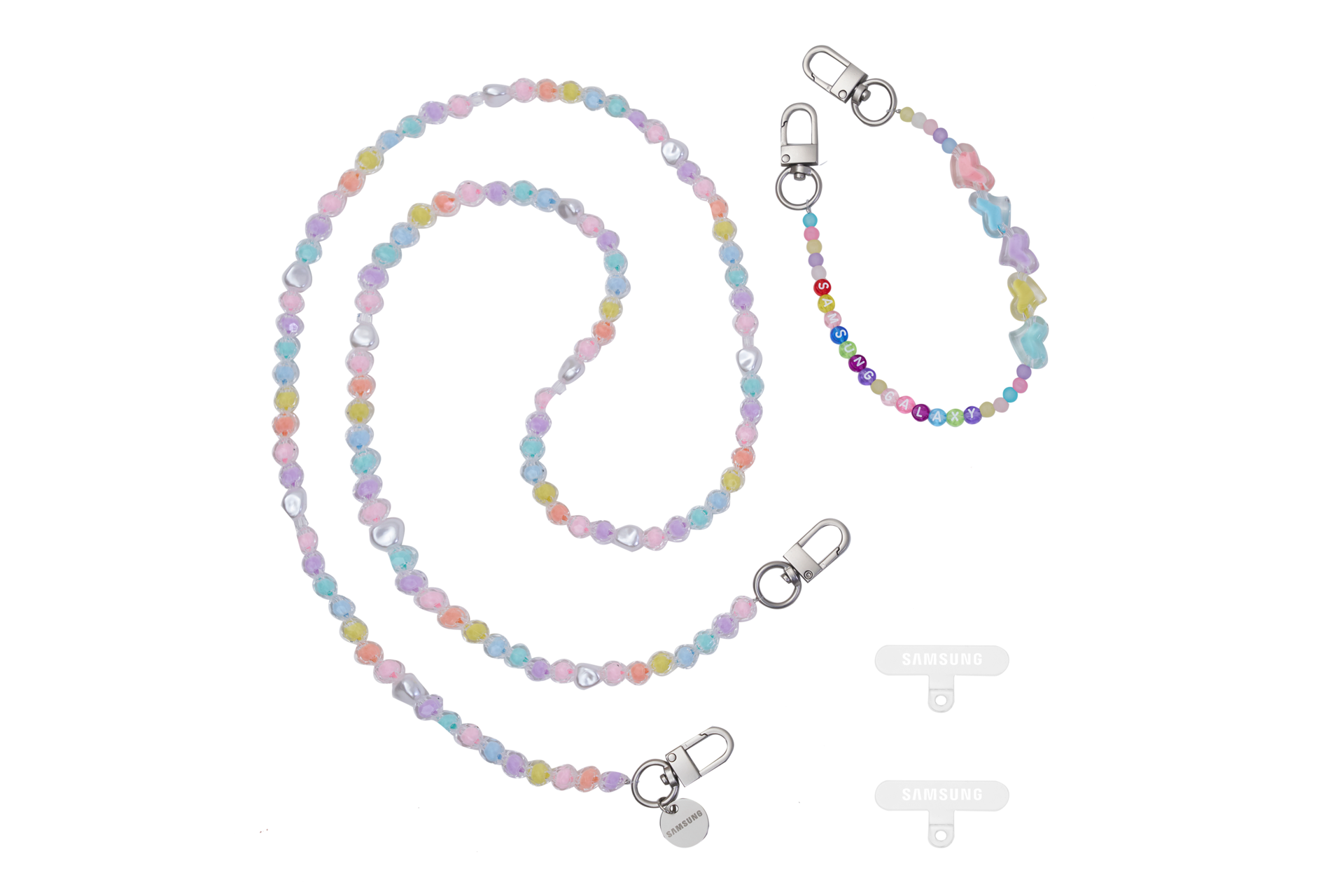 搭配Galaxy Z Flip6手机的串珠颜色,以及特别设计的“SAMSUNG GALAXY”字母串珠