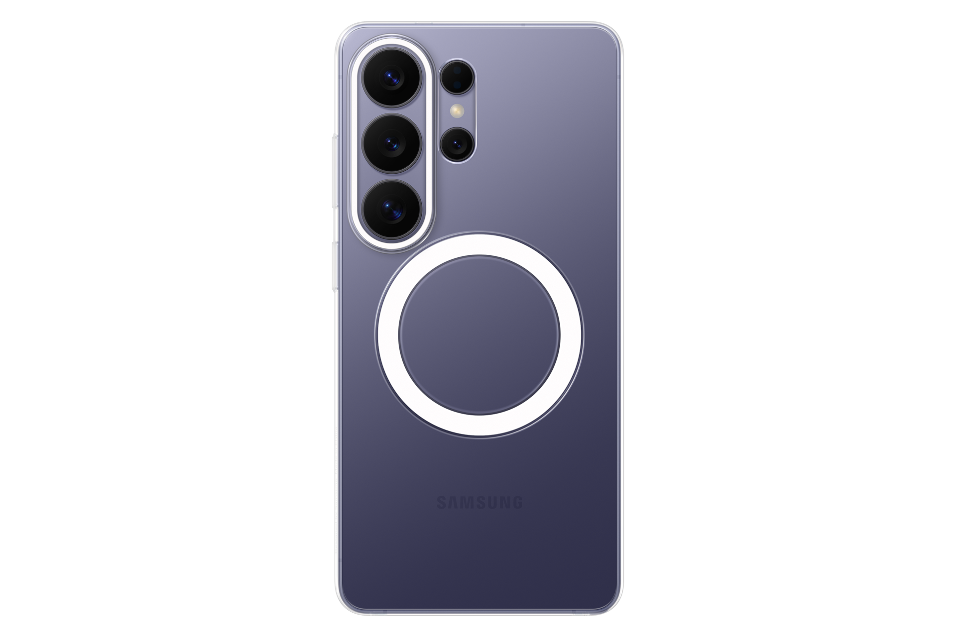 Galaxy S26 Ultra透明磁吸保护壳内置磁铁阵列,可实现设备的精准对位,提升无线充电的便利性。它还可稳固吸附多种兼容的磁吸配件,包括无线充电器、指环支架、钱包与车载支架等。