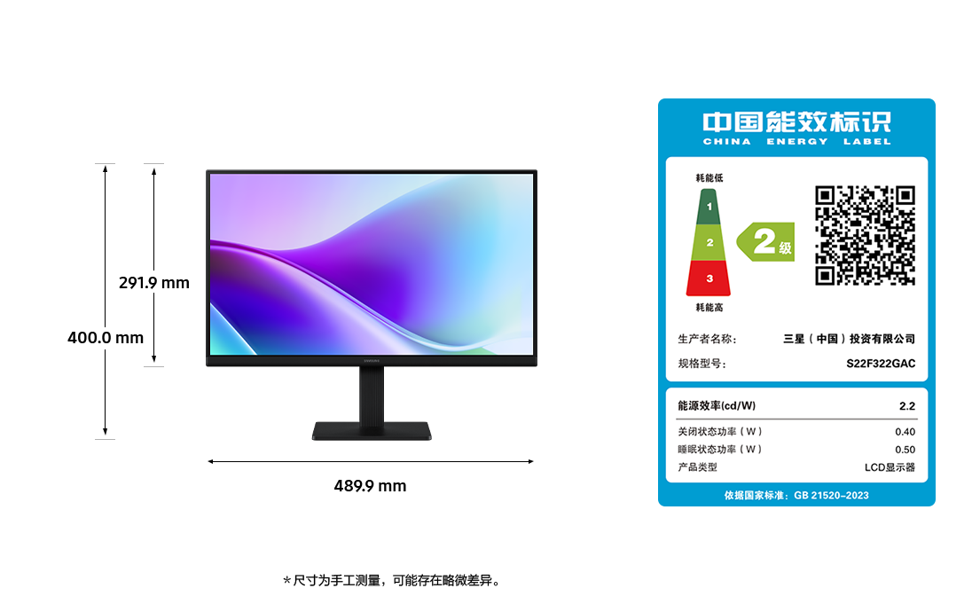 22英寸 S32GF 平面显示器 S22F322GAC