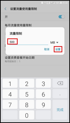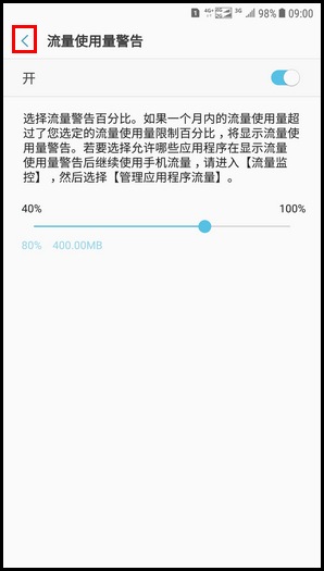 11.点击【<】图标,返回设置流量使用量限制界面。
