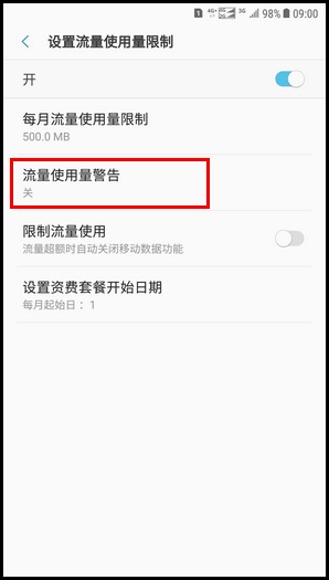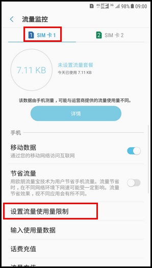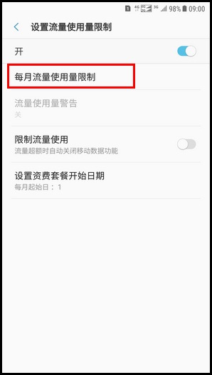 Samsung Galaxy C8 SM-C7100/C7108(7.1.1)如何设置流量使用量限制?