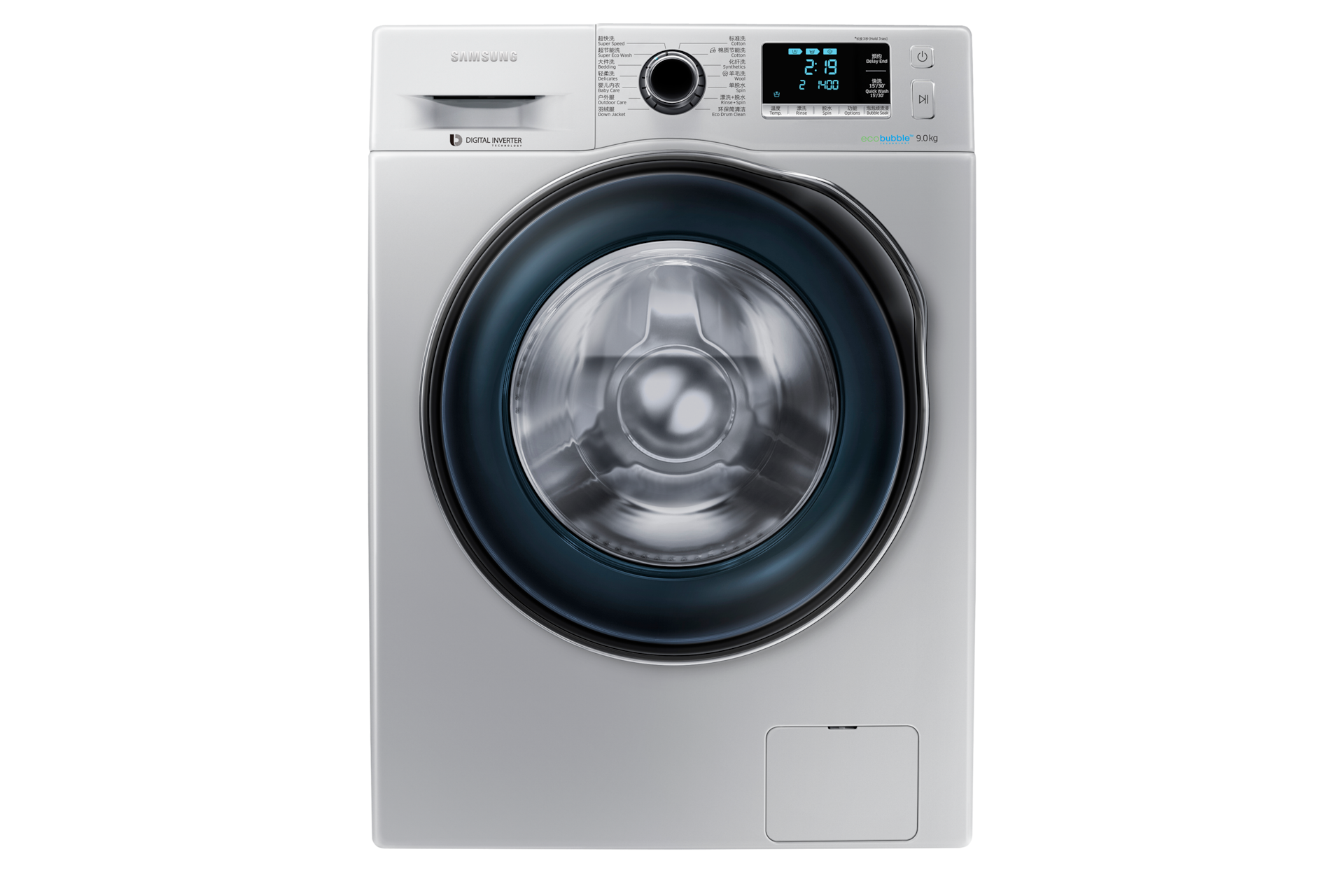 *此数据为三星内部检测;负载少于2公斤轻微弄脏衣物,最少约15分。取决于水压,水硬度及额外选项等条件;快洗时间:关>15>30;建议此程序洗涤剂量小于20克。